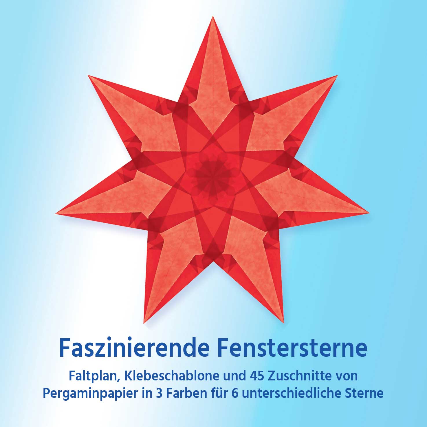 Das Komplett-Set enthält 45 Blatt exakt zugeschnittenes Pergaminpapier für sechs leuchtende Fenstersterne von etwa 20 cm Durchmesser.