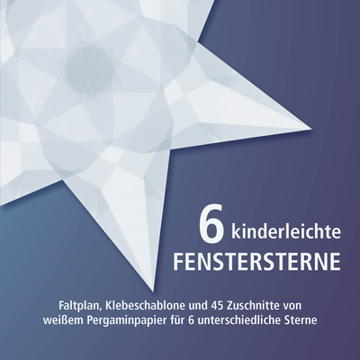 Das Komplett-Set enthält 45 Blatt exakt zugeschnittenes Pergaminpapier für sechs leuchtende Fenstersterne von etwa 20 cm Durchmesser.